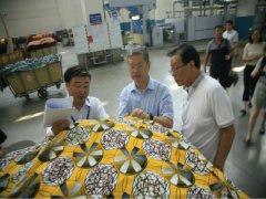 中國紡織工業(yè)聯(lián)合會會長孫瑞哲(左一)一行在視察,指導(dǎo)企業(yè)發(fā)展