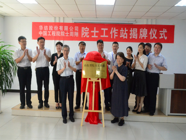 8月2日,公司與中國工程院院士周翔合作建立的院士工作站,在公司科技產業園舉行揭牌儀式。儀式由公司黨委書記、董事長王力民主持并介紹華紡科技發展情況,濱城區委常委、組織部長王麗,中國工程院院士、東華大學教授周翔,濱州市副市長曹玉斌先后致辭;周翔院士、曹玉斌副市長為華紡院士工作站揭牌。