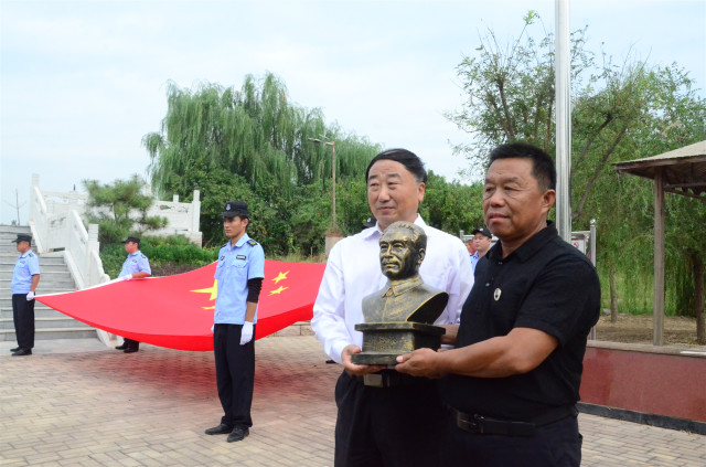 公司黨委書記、董事長王力民代表公司,接受紀(jì)念園負責(zé)人曹文濱代表紀(jì)念園捐贈的周恩來總理半身塑像。