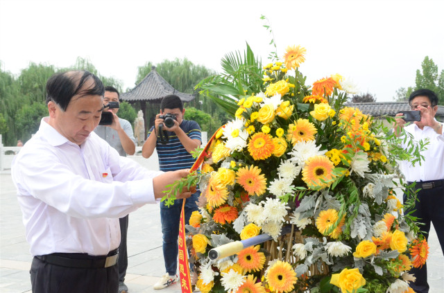 向周恩來總理骨灰撒放地紀(jì)念碑敬獻花籃,拜謁紀(jì)念碑。