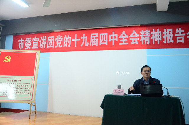 導讀:11月30日,市委宣講團成員,市生態環境局黨組成員、副局長王景志來到公司,為黨員代表和骨干管理者代表宣講了黨的十九屆四中全會精神。