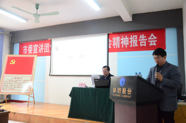 通過宣講學習,公司黨員代表和管理者代表紛紛表示,一定要凝心聚力,開拓創新,把思想行動統一到黨的十九屆四中全會精神上來,持續深入學習全會精神,切實抓好全會部署的各項決策任務的落實。公司黨委副書記、總經理閆英山談到:“通過宣講學習,讓我們進一步了解了全會精神,為我們華紡這樣的國有企業指明了前進方向。我們要堅定不移地貫徹、落實好全會精神,大力推進轉型升級、提質增效,努力實現新時代華紡的高質量發展,不懈推動‘一體兩翼’發展布局,持續做強華紡品牌,為經濟社會高質量發展作出更大貢獻。”宣講報告會由公司副總經理孫玉濤主持。