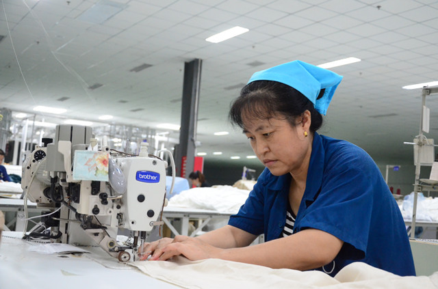 導讀:今年49歲的劉青云是公司家紡成品車間縫制三班的縫制工,也是全班19名成員中的“老大姐”。