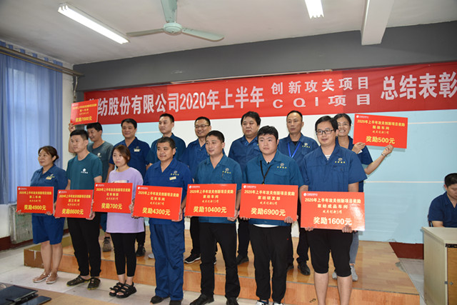 在CQI項目改進方面,公司展開CQI項目共計15項,在7項完成并受獎的項目中,4項超目標完成,實現收益303.8萬元。其中,花布車間完成并受獎的是“減少改漿,提高一次成功率”項目,面三車間完成并受獎的是“降低打底機疵布降等”項目、“提升5.11三防一等品率”項目,動力分公司完成并受獎的是“提高熱油機組經濟發電量”項目,水處理一車間完成并受獎的是“提高生化處理降低藥劑成本”項目,水處理二車間完成并受獎的是“降低次氯酸鈉噸水處理費用”項目,熱力二車間完成并受獎的是“改善熱水平衡提升換熱效率”項目。