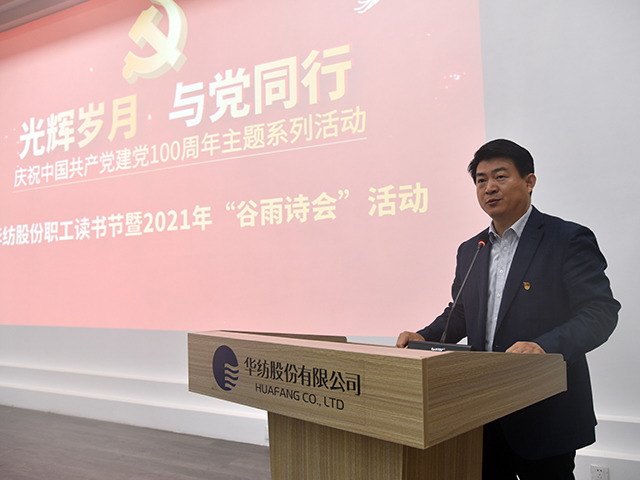 4月18日,華紡股份有限公司慶祝中國共產黨建黨100周年主題系列活動——“光輝歲月·與黨同行”華紡股份職工讀書節啟動儀式暨2021年“谷雨詩會”,在該公司舉行。