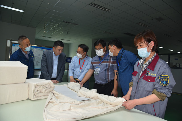 5月13日,蘇美達股份黨委委員、蘇美達輕紡公司董事長范雯燁一行,來到公司參觀座談。軍需裝備研究所郝新敏博士,公司總經理閆英山,黨委副書記、供應鏈總監盛守祥,工程技術研究院院長孫紅玉陪同參觀座談。