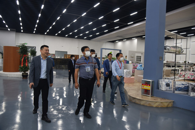 閆英山陪同范雯燁一行參觀了智能綠色工廠建設項目及花布車間、家紡成品車間、智能立體倉庫、服裝面料分公司、花布分公司、家紡分公司、創意中心、綜合辦公區域、工程技術研究院、檢測中心、智云中心等,并對公司整體發展情況進行了介紹。