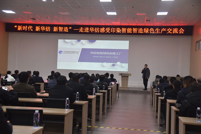 公司黨委副書記盛守祥代表公司,向與會領導及會員單位代表介紹了公司“退城進園”暨“智能綠色工廠建設項目”、升級印染全流程的智能制造等情況,并圍繞公司近年來大力推進企業轉型升級和新舊動能轉換工作,重點介紹了公司在智能智造、綠色生產方面的主要做法與經驗。公司副總工程師王國棟對公司近年來推動轉型升級及打造“智慧華紡”的整體發展成效,作了專題報告。