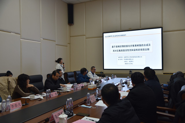 導讀:1月14日,山東省重點研發(fā)計劃(公益類)項目“基于廢棉織物的胺化纖維素樹脂的合成及其對含氟表面活性劑和染料的有效去除”項目驗收會議在公司舉行。