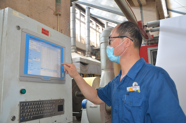 生產一線操作員工在查看機臺能耗及工藝執行情況