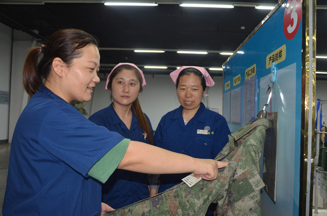 服裝車間員工現場討論推進開源節流和質量提升工作
