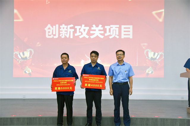 導(dǎo)讀:7月23日,公司在會(huì)議中心舉行2022年上半年度工作會(huì)議,對(duì)CQI項(xiàng)目、創(chuàng)新攻關(guān)成果以及質(zhì)量之星、效率之星、工藝操作之星、現(xiàn)場(chǎng)6S之星和精益提案之星進(jìn)行表彰獎(jiǎng)勵(lì)。