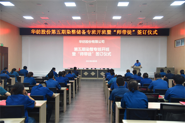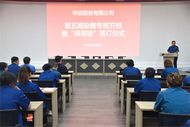 導(dǎo)讀:8月9日,公司舉行第五期染整技術(shù)儲(chǔ)備人才專班開班暨“師帶徒”簽訂儀式。