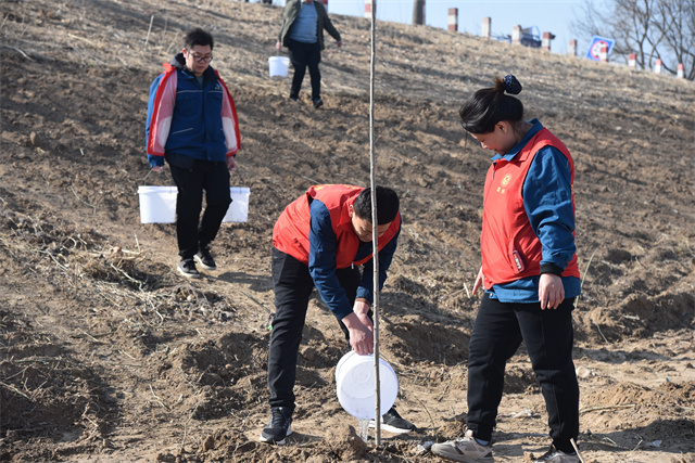 在公司黨委書記、董事長盛守祥的帶領下,參加活動的黨委班子成員、員工代表紛紛拿起工具,有的挖坑鏟土,有的扶正樹苗,有的培土定植,有的澆水覆土,各個環節銜接有序、配合默契,現場一片熱火朝天的景象。經過大家的努力,新栽種的樹苗棵棵挺立,放眼望去,處處煥發著勃勃生機。大家紛紛表示,通過植樹活動,進一步增強了保護環境、保護大自然的意識,為推進黃河流域生態保護和高質量發展貢獻了自己的一份力量。
