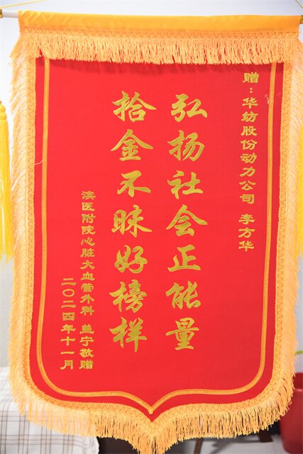 近日,公司員工李方華收到了一件特殊的禮物——一面寫有“弘揚(yáng)社會正能量,拾金不昧好榜樣”的錦旗。了解事情的經(jīng)過后,不禁讓人敬佩與暖心。