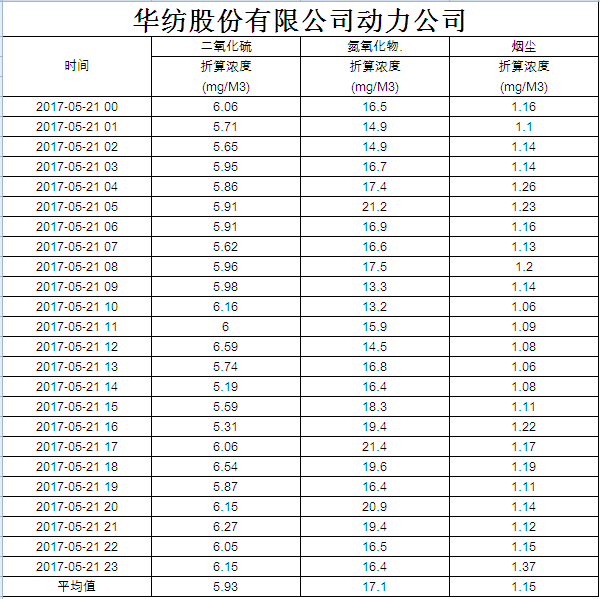 煙氣排放數據信息公開2017.5.21數據