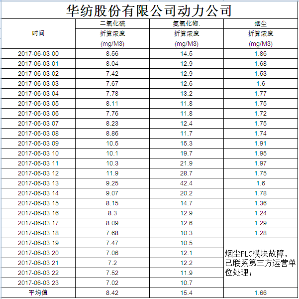 煙氣排放數據信息公開2017.6.3數據
