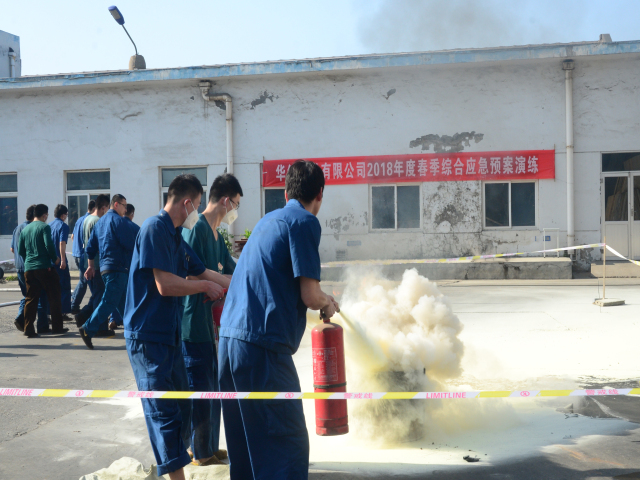 4月27日,公司分別在總廠區和科技產業園舉行了2018年度綜合應急預案演練,公司各部門12個消防支隊200余名員工參加演練。